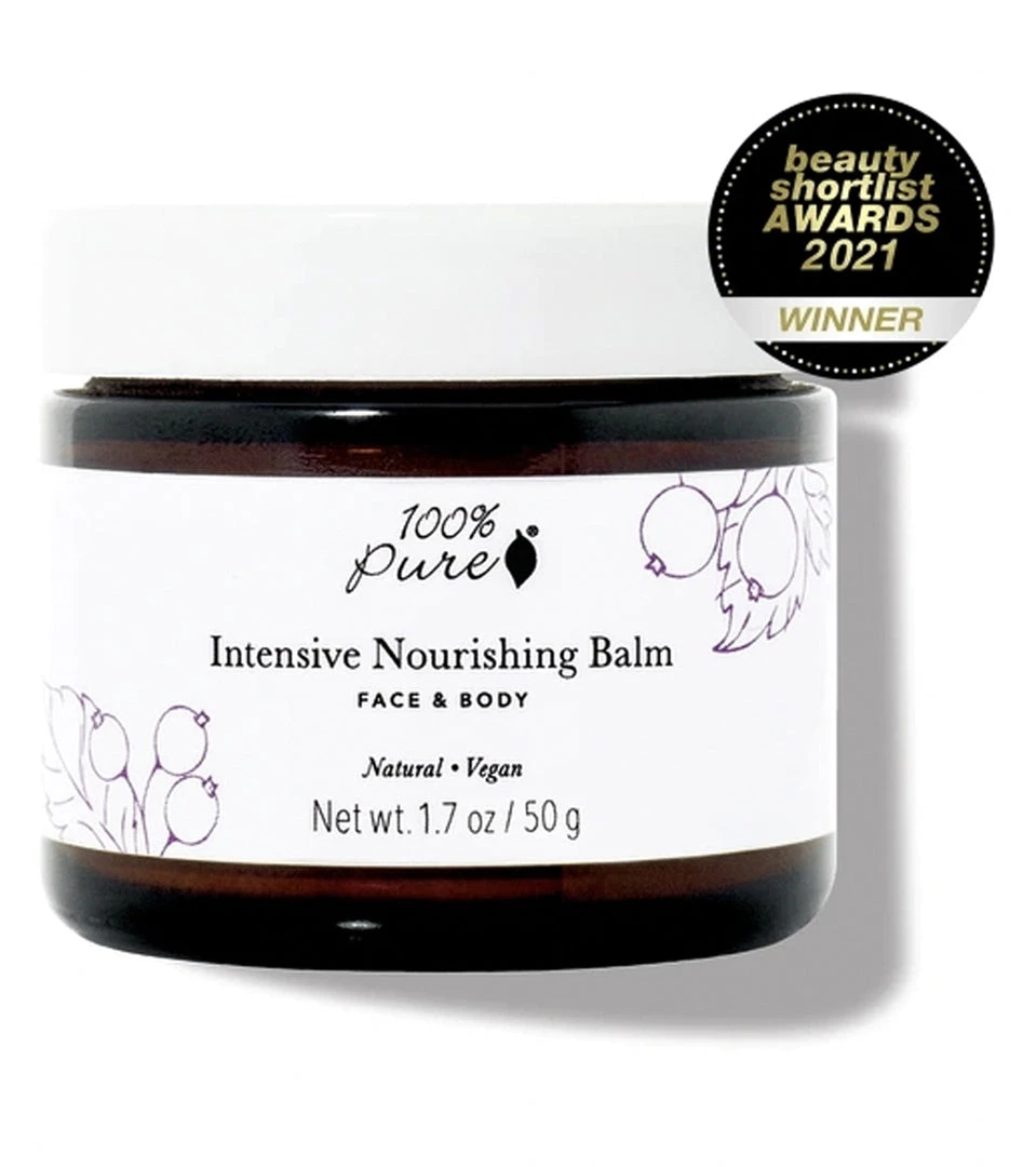 Treat troubled skin to an intensive moisture treatment for face and body, designed to target areas of extreme dryness. This concentrated blend of rich butters and nourishing oils can be used to smooth dry patches around the nose, elbows, feet, or any area prone to dryness. The 100% Pure Intensive Nourishing Balm 1.7 oz is a multipurpose salve infused with calming lavender oil to relieve dry, itchy, or flakey skin.