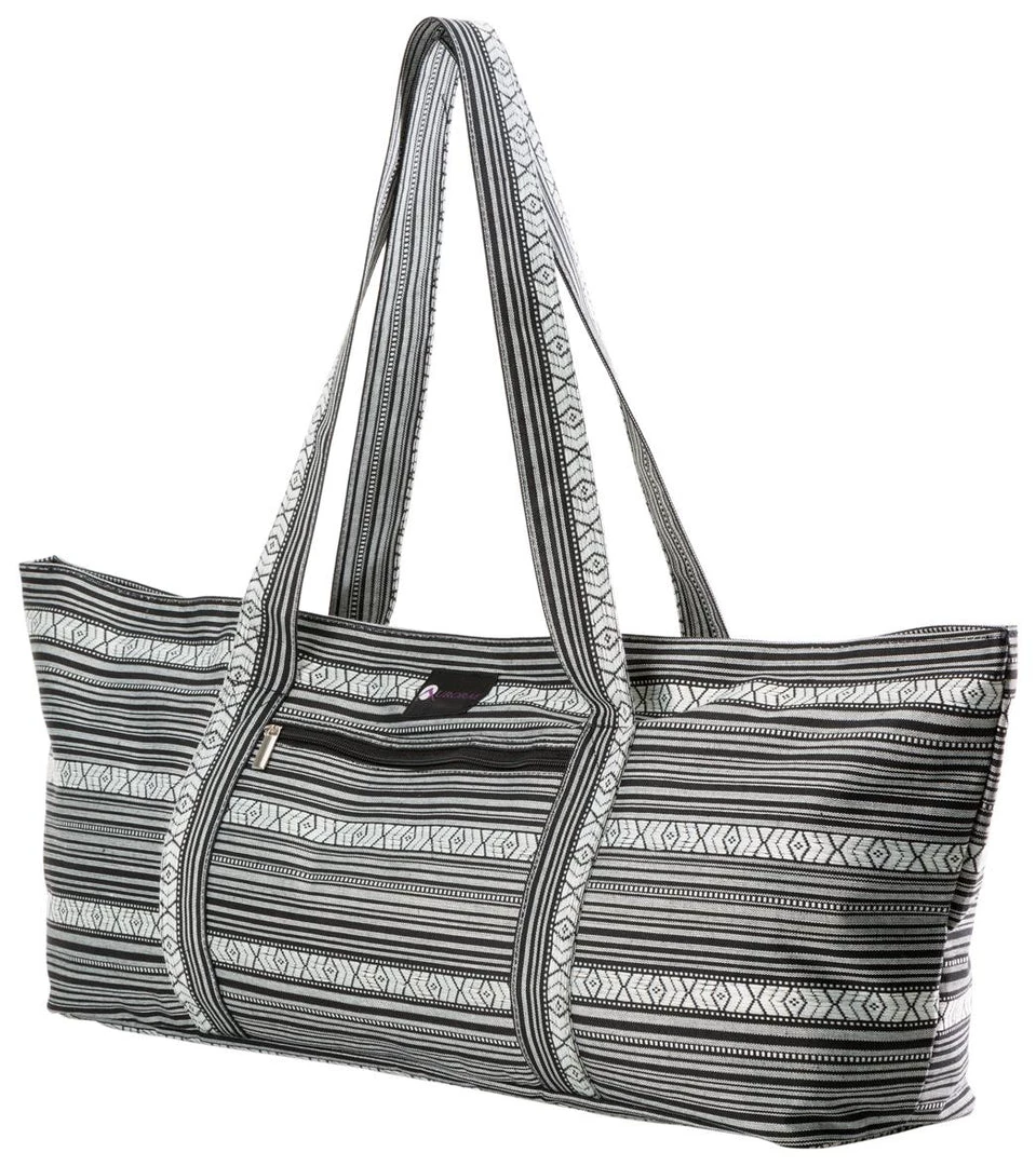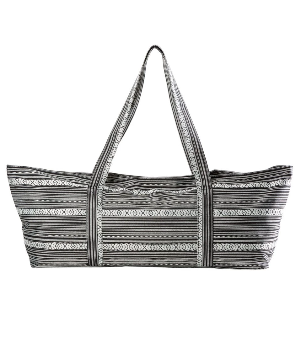 With a stripe print and oversized silhouette, this Yoga Mat Tote Bag fits all your essentials with ease. Whether going to the gym, the studio or a weekend getaway, this bag accommodates all yoga mat sizes with room to spare.