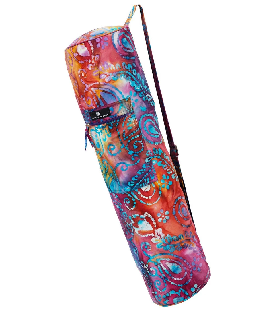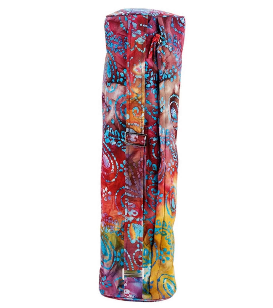 Carry your yoga essentials in style with this Batik Yoga Mat Bag. A tie-dye inspired print covers this bag that fits most yoga mats.