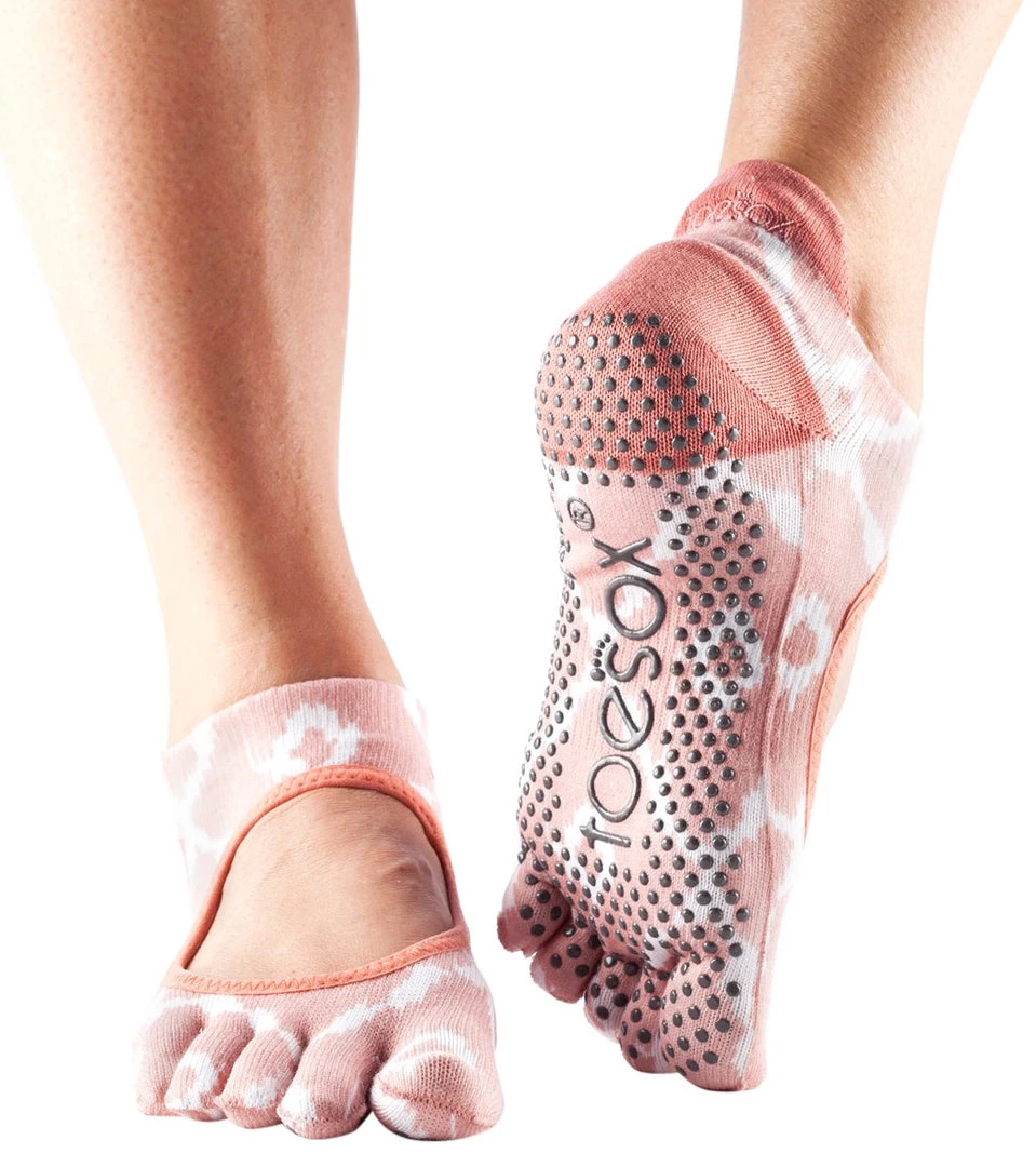 Enhance your performance with these Toesox Bellarina Full-Toe Yoga Grip Socks. Its closed five-toe design allows your toes to spread naturally for a better-supported stance, while a patented non-slip sole provides secure footing as you move on and off the mat.