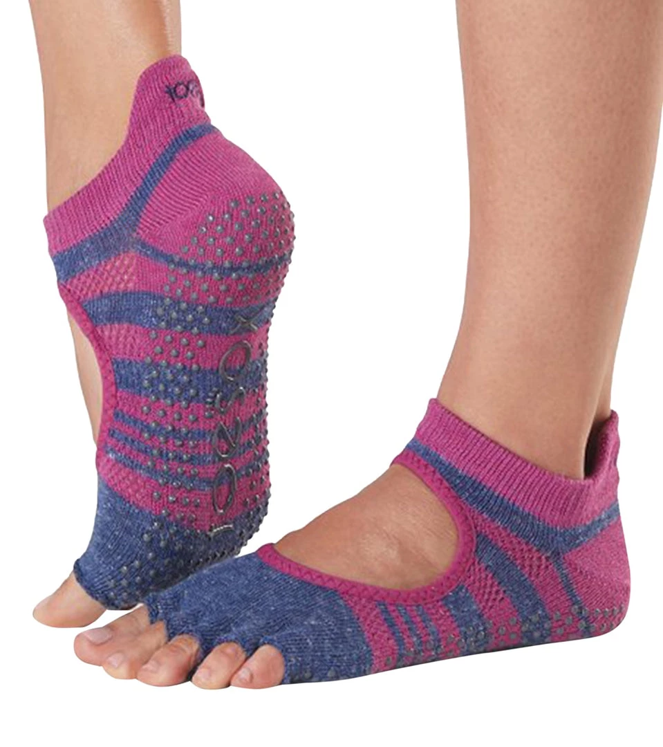 - Style Features: Ballet inspired Bellarina feels barely there and features ToeSox patented non slip sole for secure footing on any surface.? Heel tab protects Achilles at the Barre. Made with super soft, organic cotton in a variety of great colors.
