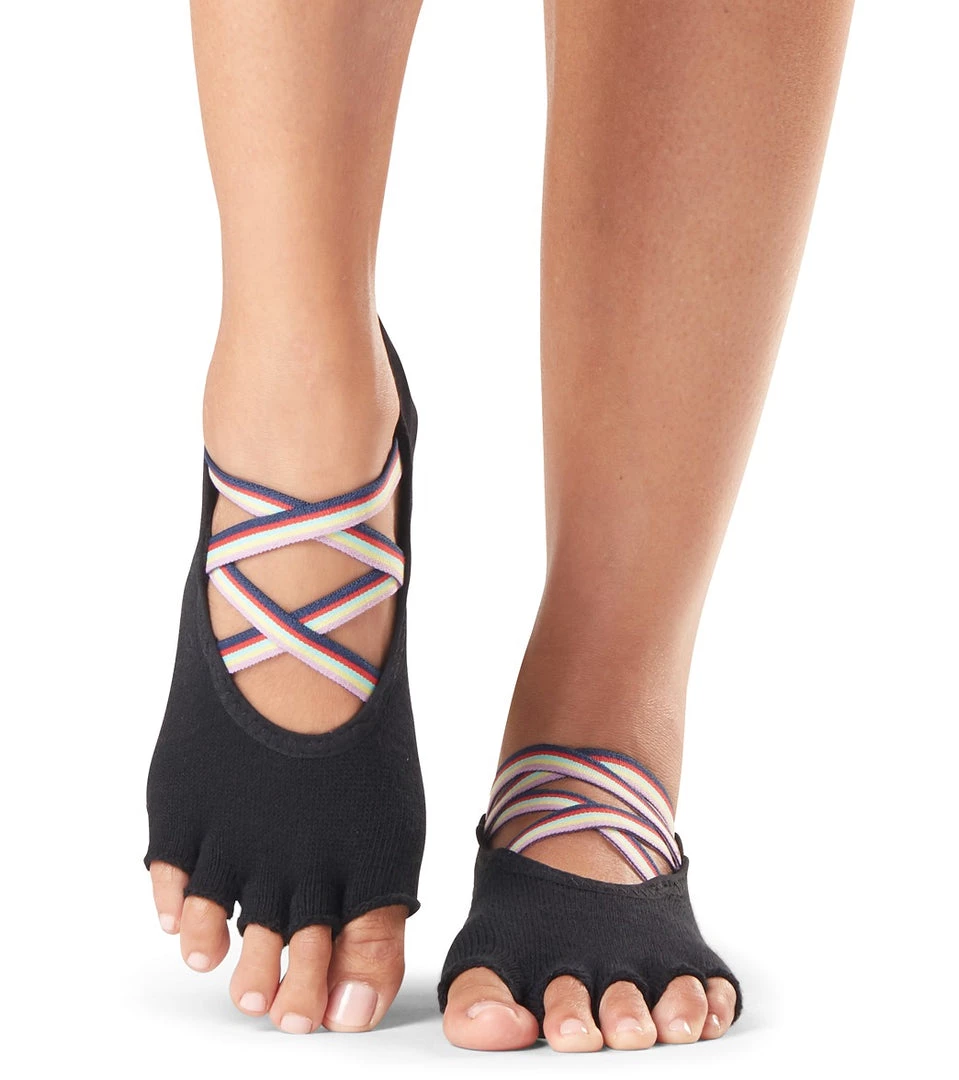 Get the perfect grip for yoga, Pilates, and barre with Toesox Elle Half-Toe Yoga Grip Socks. The five-toe sock design spreads your toes to help create a broader foundation on which to balance, and with Elle’s elastic crisscross strap design, this sock will stay snug on your foot through all activities.