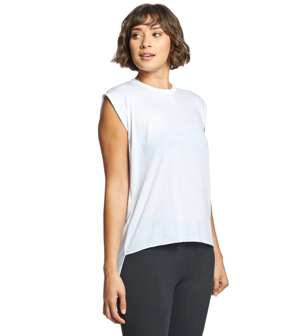 Go back to basics with this Bella + Canvas Flowy Rolled Cuff Muscle Tee. This exceptionally soft top features rolled cuffs at arm openings for effortless style you can wear in and out of the studio.