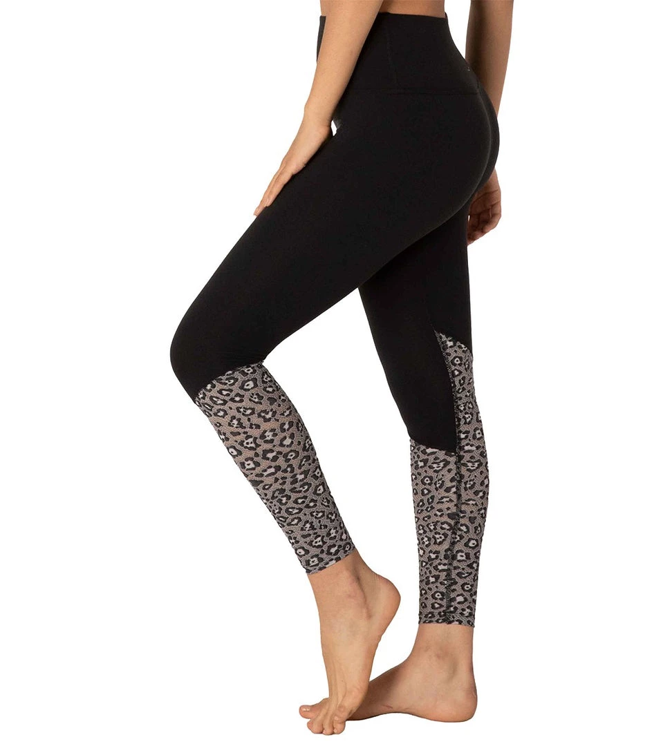 Take a walk on the wild side in the Beyond Yoga Back Me Up High Waisted 7/8 Yoga Leggings, featuring accent leopard print mesh panels.