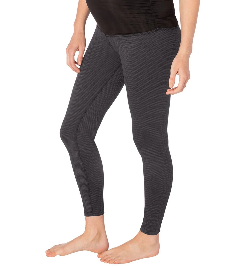 These Deco Fold Down Maternity Yoga Leggings are the perfect way to get ultimate comfort with high style. The wide waistband is comfortable against your growing belly and the art deco inspired jacquard print brings high style.