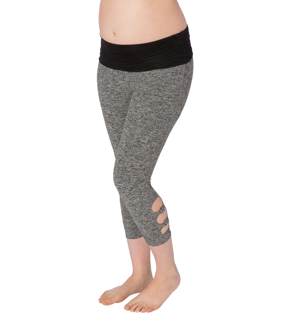 These Spacedye Maternity Circle Cut-Out Yoga Capris are the perfect way to get ultimate comfort. The wide waistband is made of super soft fabric and can be worn under or over your belly.