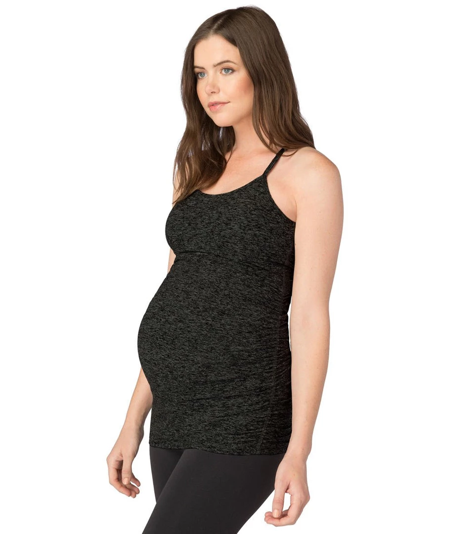 Show off your baby bump with the Spacedye Maternity Slim Racerback Yoga Tank top. The super soft fabric stretches to accommodate your growing belly.