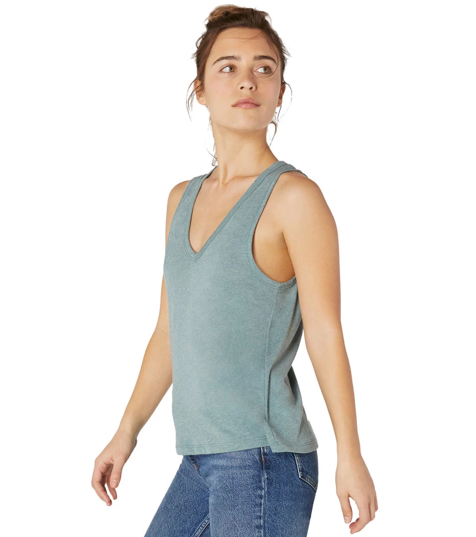 The fun back opening of the Beyond Yoga Boyfriend Jersey V-Neck Yoga Tank give a breezy look.