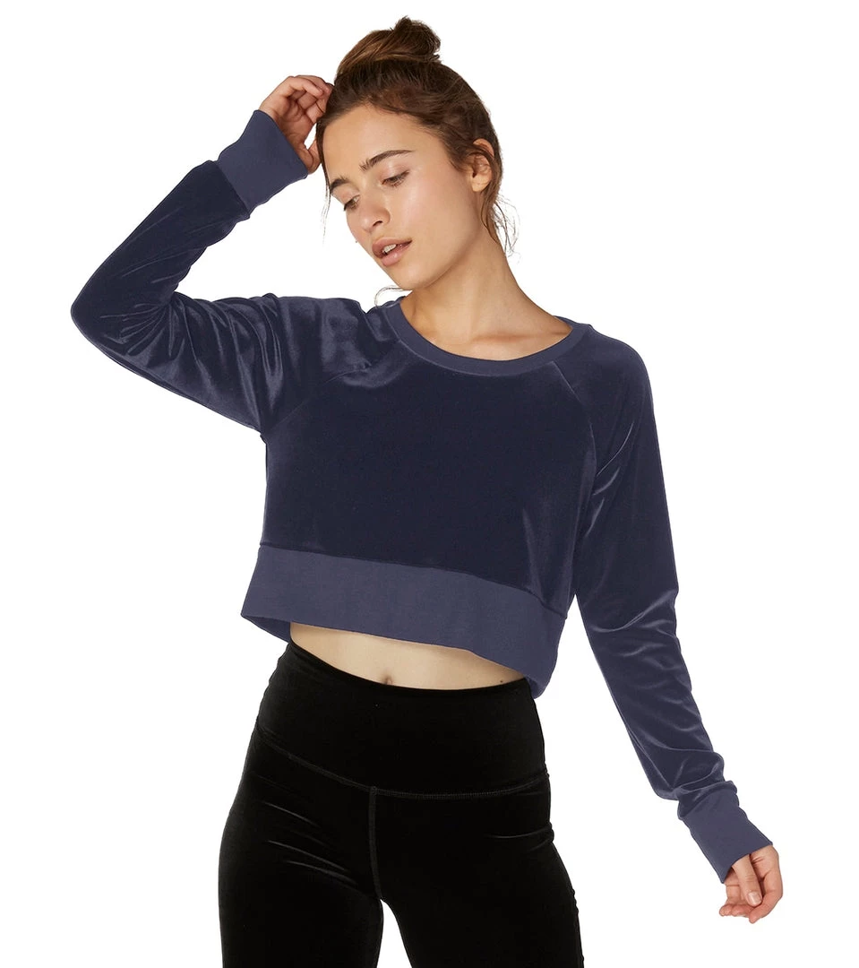 The Beyond Yoga Cropped Velvet Pullover is the perfect layering piece.