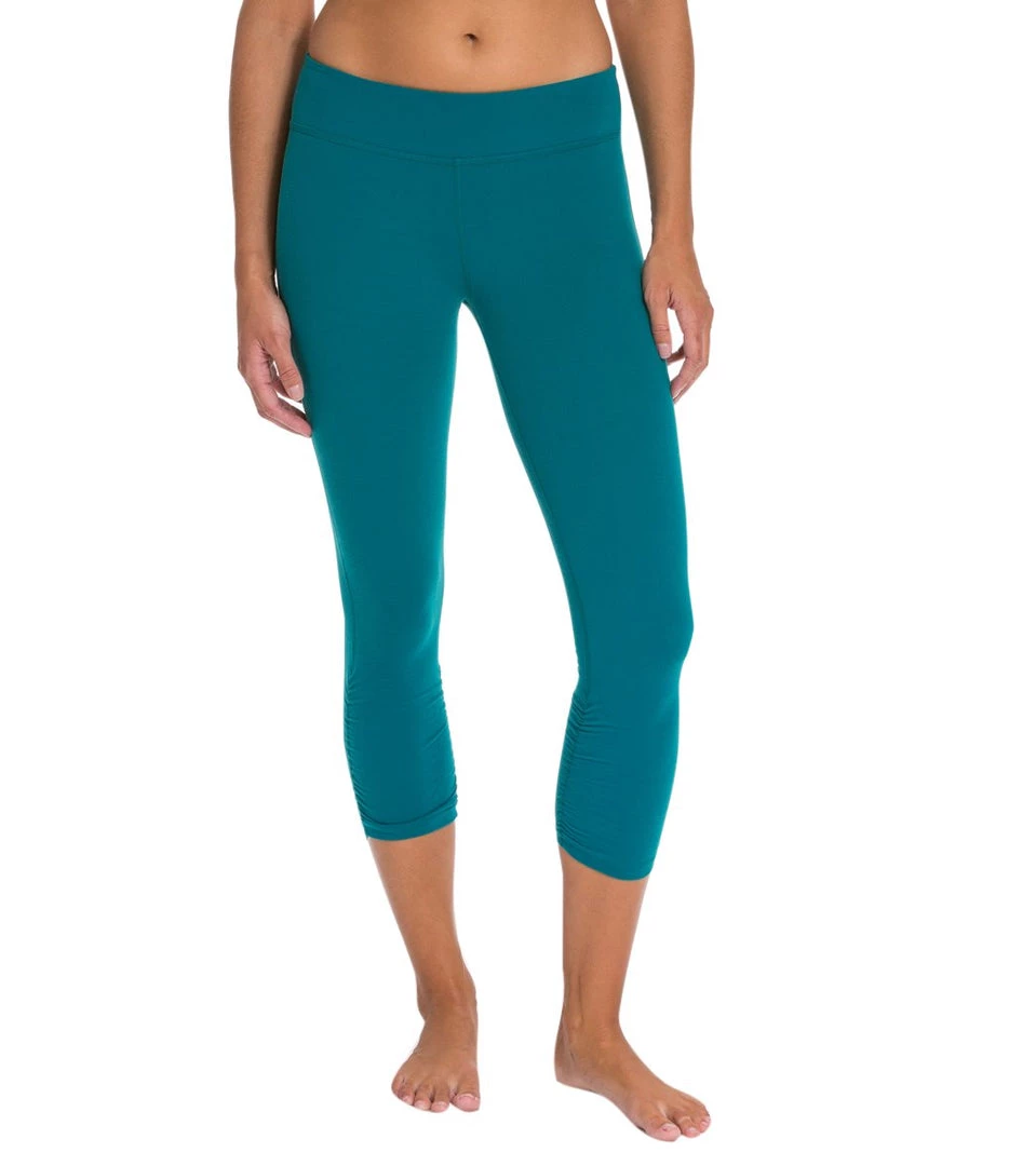 Beyond Yoga Essential Gathered Yoga Capris Pineneedle