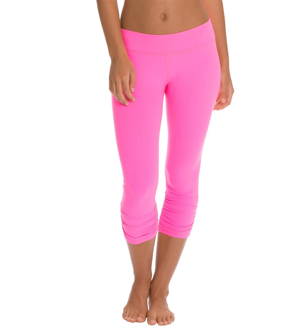 Beyond Yoga Essential Gathered Yoga Capris Shocking Pink