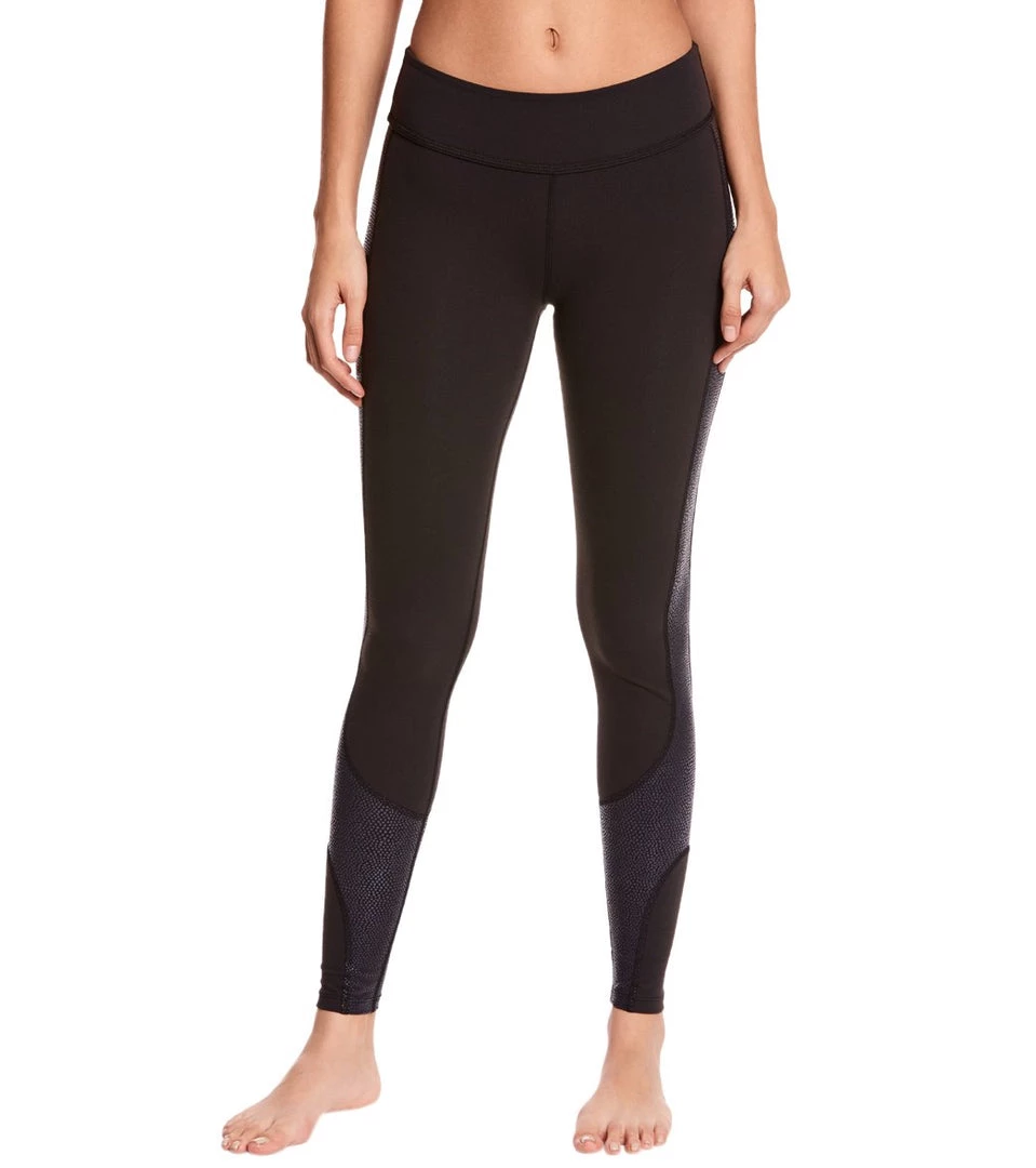 Dress up the studio with these Glass Curved Side Yoga Leggings. Shiny fabric insets give these performance leggings a high-fashion look.