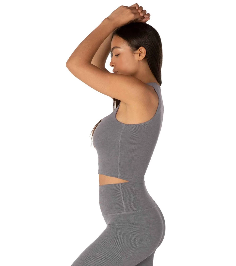Top of your favorite leggings with this Beyond Yoga Heather Rib Square Neck Cropped Yoga Tank Top, an ideal layering essential thanks to its soft, stretchy, ribbed fabric and stylish, square neckline.