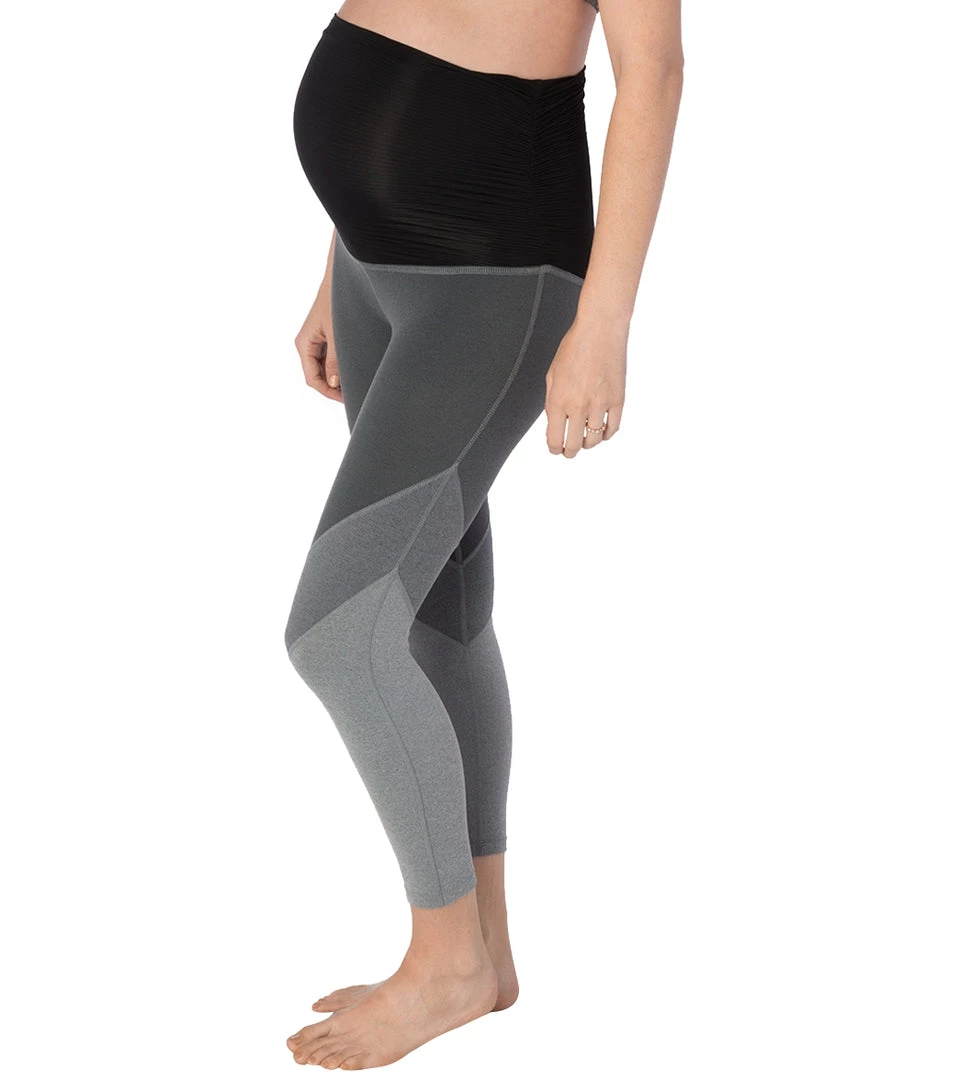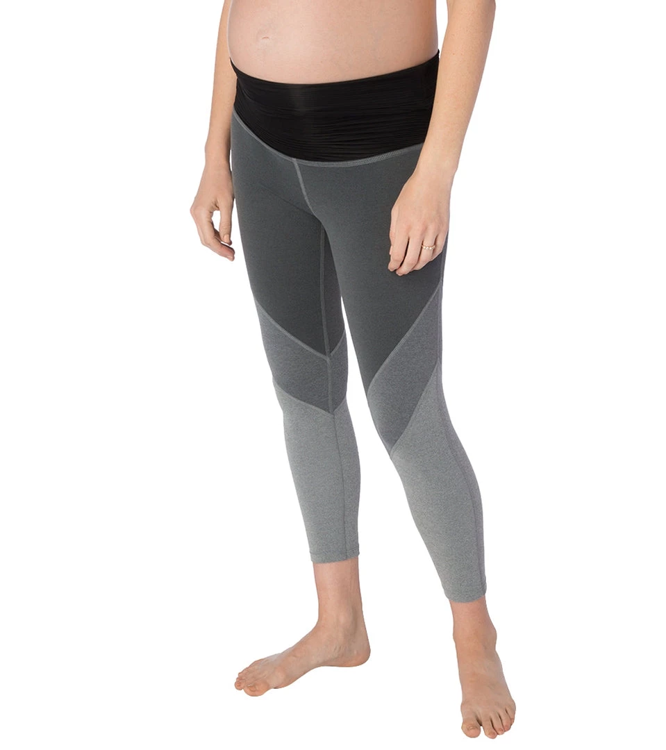 - Wide, stripe-printed waistband can be folded under belly or pulled up over belly.