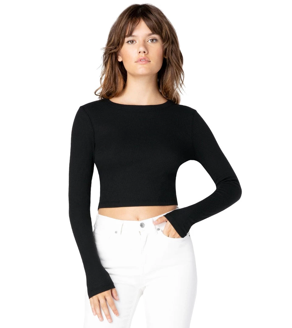 Pair the Beyond Yoga Rib Knit Jersey Keep in Line Cropped Pullover with high-waisted jeans for a trendy look.