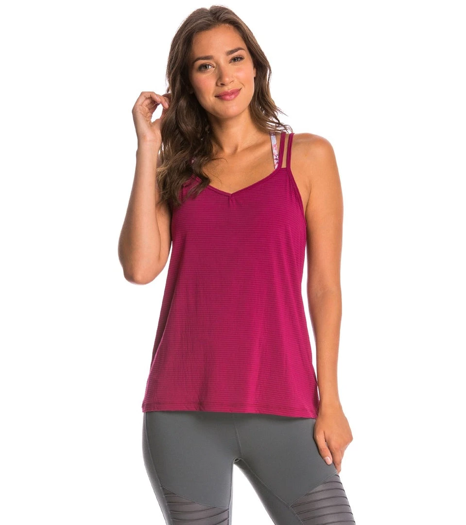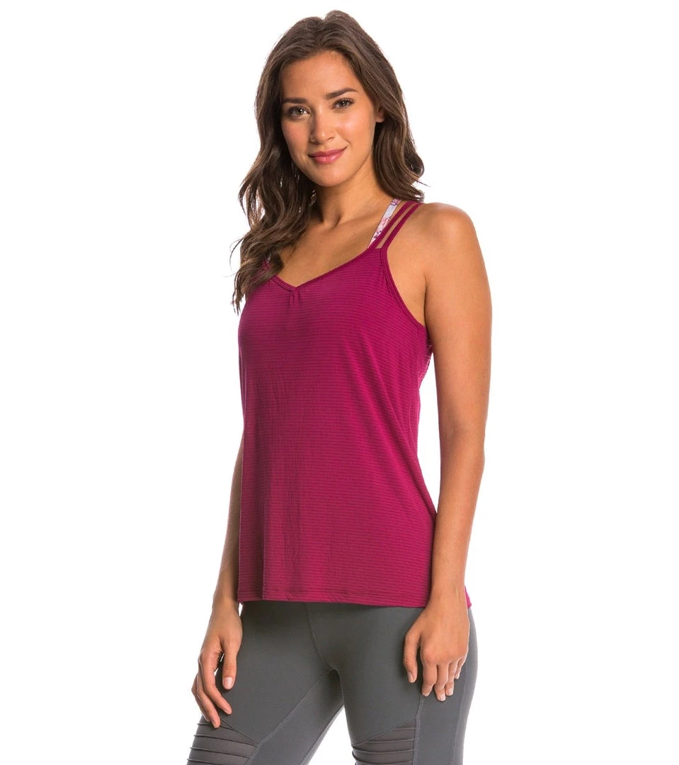 Put your back into your stretches with the Sleek Stripe Strappy V-Back Cami. A open and strappy back design takes this cami to new style heights.