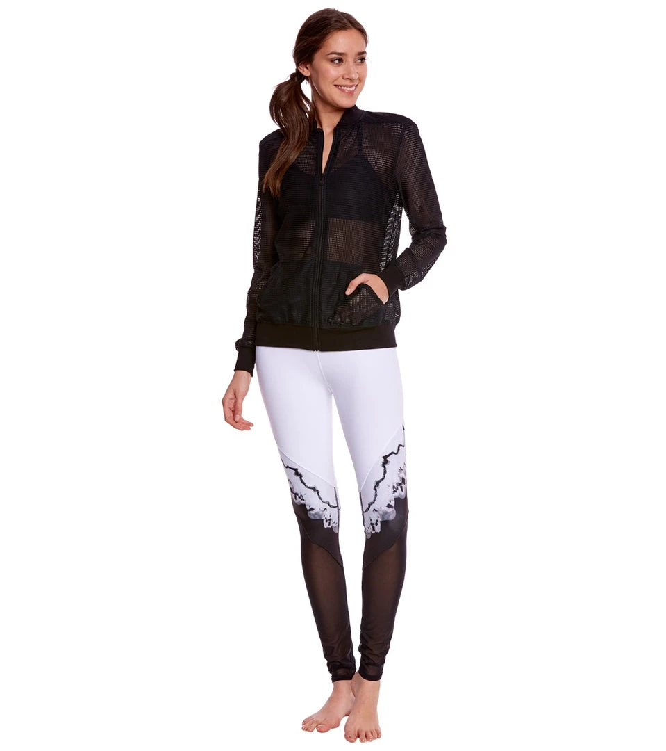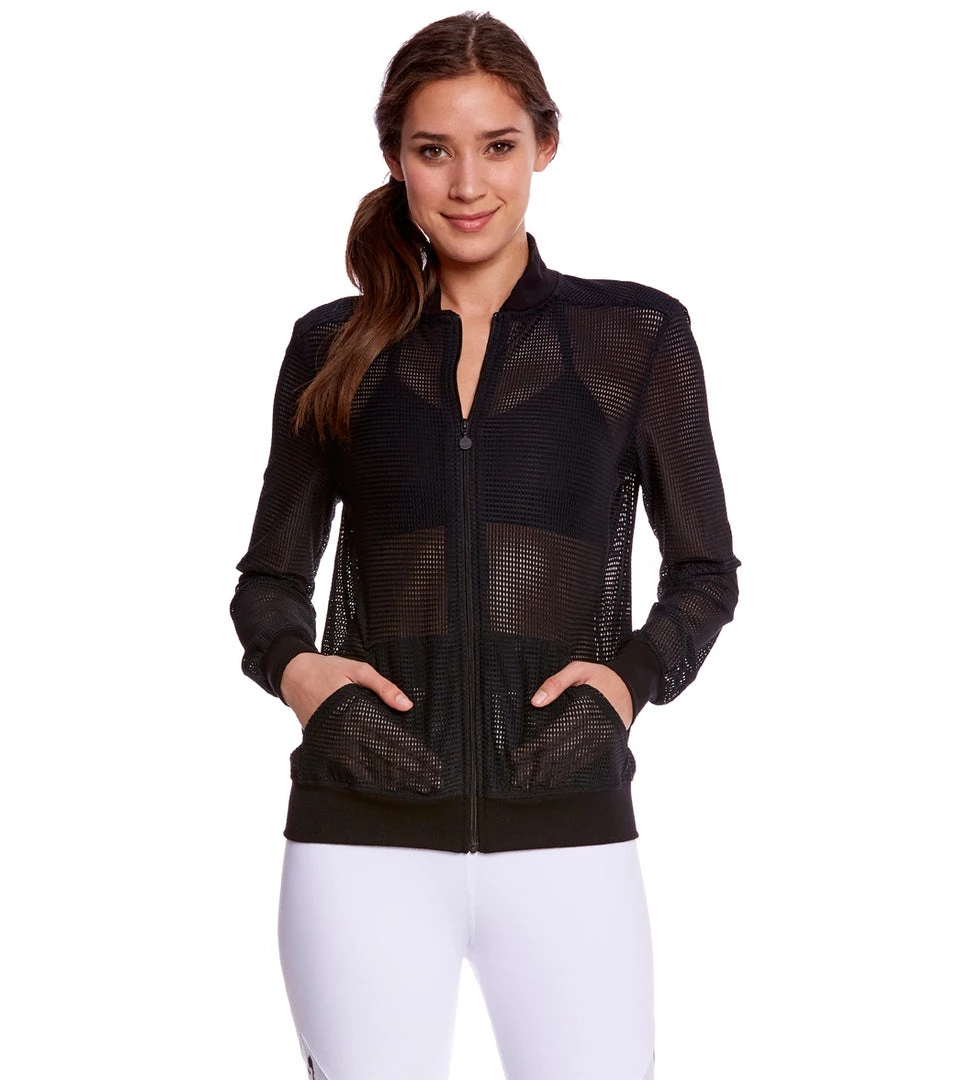 Bring high fashion to your yoga mat with the So Bomber Mesh Jacket. This après piece is made of chic sport mesh fabric for a sassy studio look.