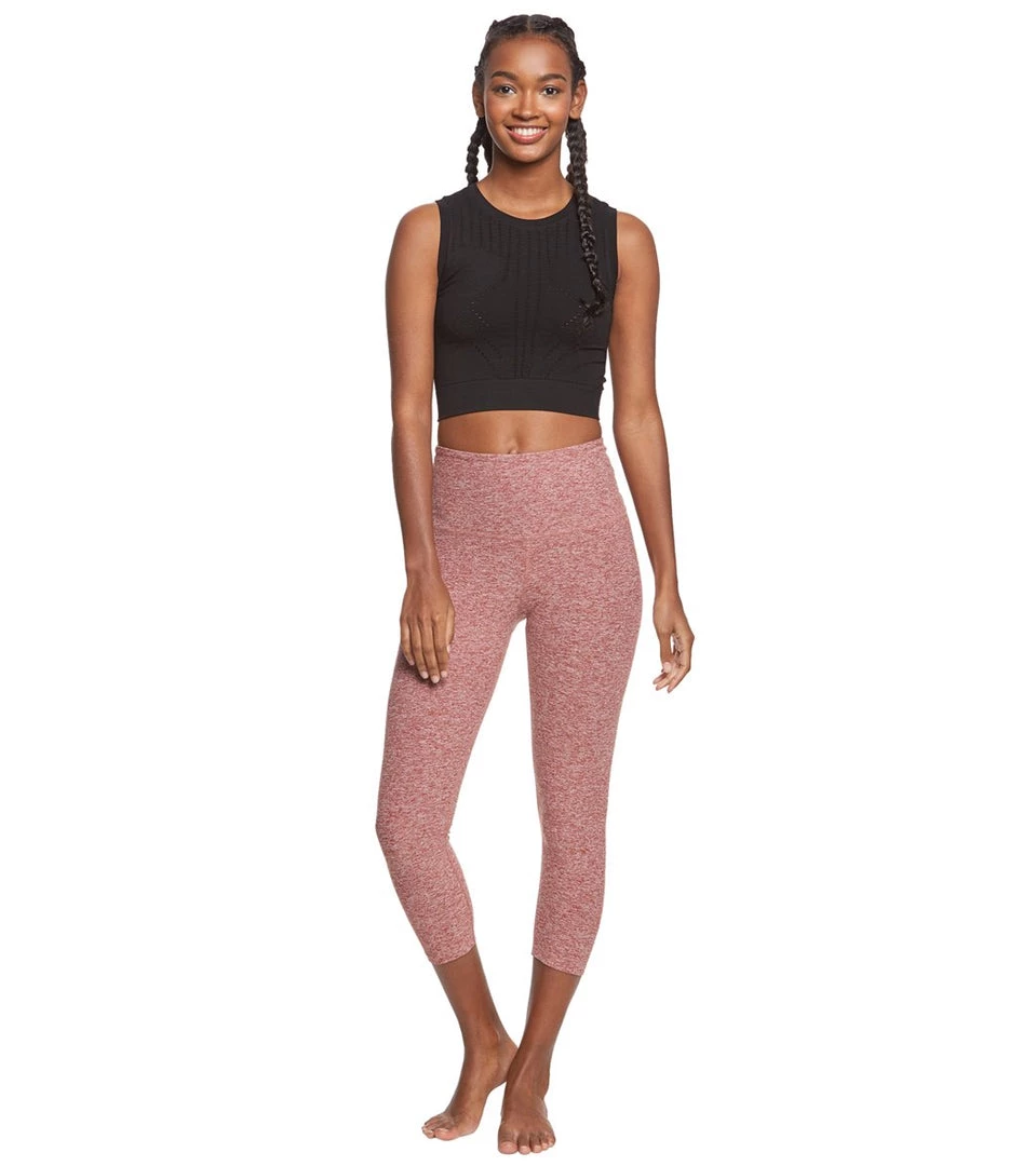 These Spacedye High Waist Yoga Capris pack the perfect punch of fashion and function. The High rise ensures no exposure while stretching into downward dog or during sun salutations.