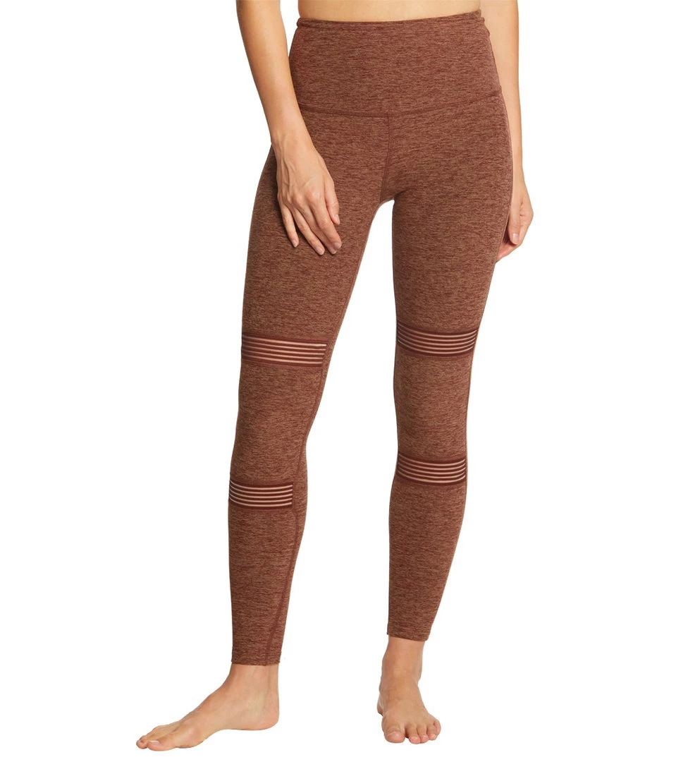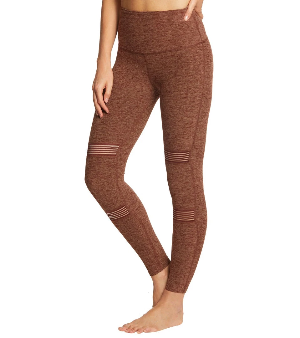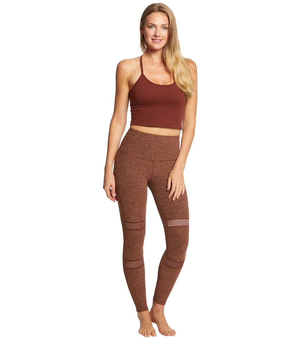 These Beyond Yoga Spacedye Mirage High Waisted 7/8 Yoga Leggings add a flirty element to a classic style. Loved for their buttery soft feel and body-hugging fit, these spacedye leggings feature tonal mesh elastic straps above and below the knees at the front.