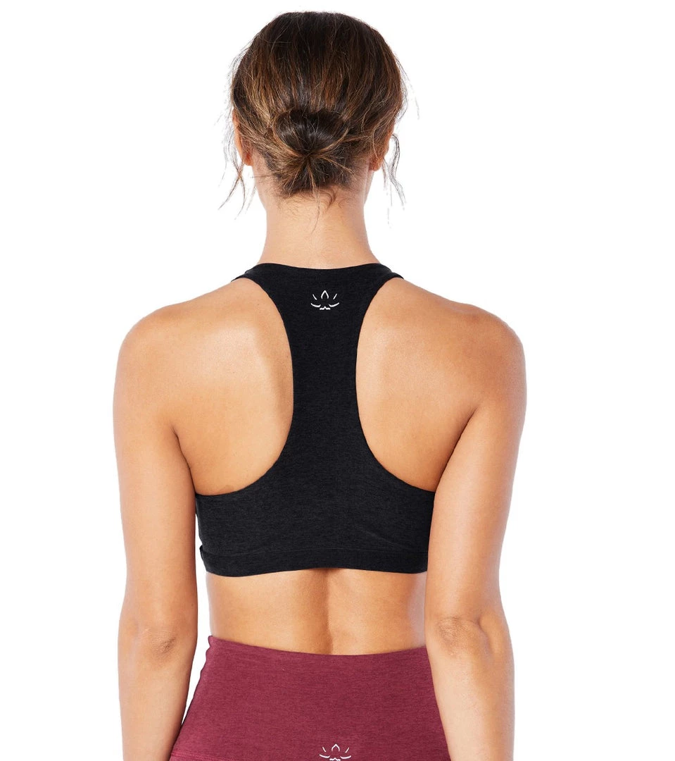 The Beyond Yoga Spacedye Totally Woven Sports Bra features woven elastic straps in front for extra stretch and extra style.