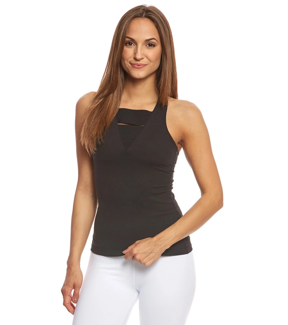 Band together in this Wide Band Stacked Yoga Tank Top. A fitted silhouette has wide elastic bands at the front for a cool way to get a great fit.
