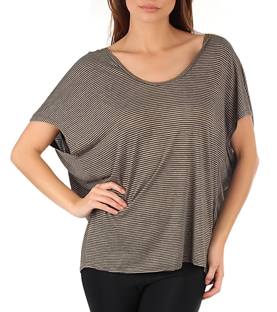 Beyond Yoga’s⢠soft top has dolman sleeves and a flowing back for a yoga-friendly top.
