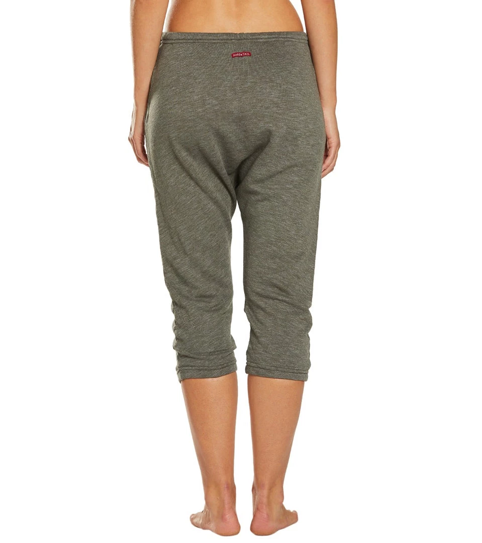 Soft, slouchy and comfortable, the Harem Capris work for lounging or stretch sessions. A drawstring waist provides needed security. Striated details add style points to this casual-feeling wear.