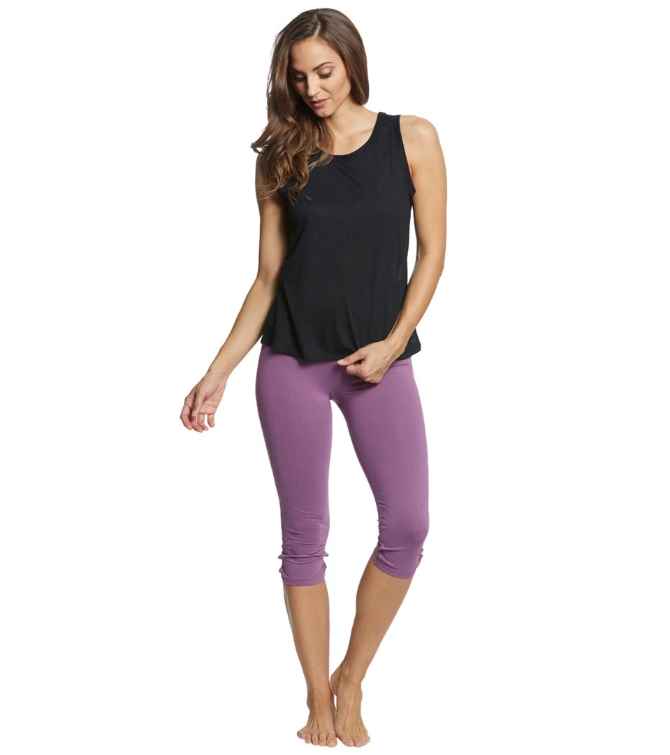 Calling all hot yoga lovers! These Balance Collection High Line 22″ Yoga Capris will be your new best friend. They’re finished with Balance Collection’s signature Dry Wikâ„¢ finish to draw moisture away from your body as you sweat and feature a subtle strap detail at the side seams.