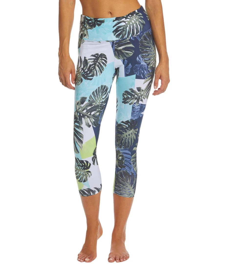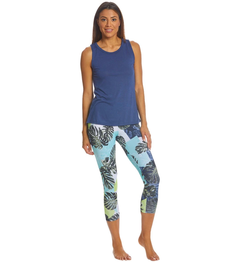 Get island vibes with the Balance Collection By Marika Printed High Waisted Yoga Capris. Crafted with Balance Collection’s signature Sanded Dry Wik™ Finish for wicking and quick dry properties, these capris feature an all-over print of palm leaves for a tropical look you can pull off in the gym or studio.