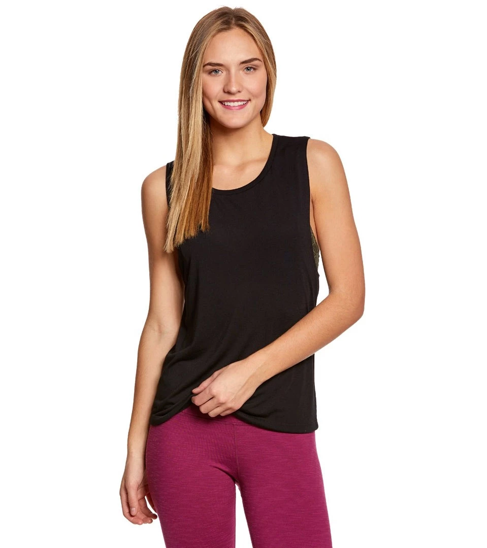 The Flowy Scoop Workout Muscle Tee is a feminine take on a masculine staple. This solid staple is perfect to wear over your sports bras or as a stand-alone piece outside of the studio.