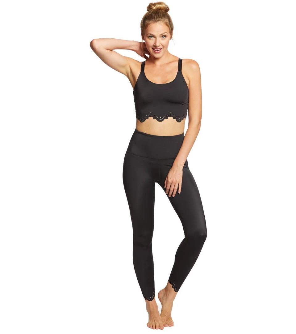 Go from the studio to post-yoga plans in this Beyond Yoga Cruz Scalloped Bralette. This performance bralette comes in a flirty style with scalloped laser cut detailing at the bottom hem. Wide adjustable back straps provide a supportive fit, while four-way stretch, compression, and UV protection fabric properties upgrade this simple, yet stylish top.