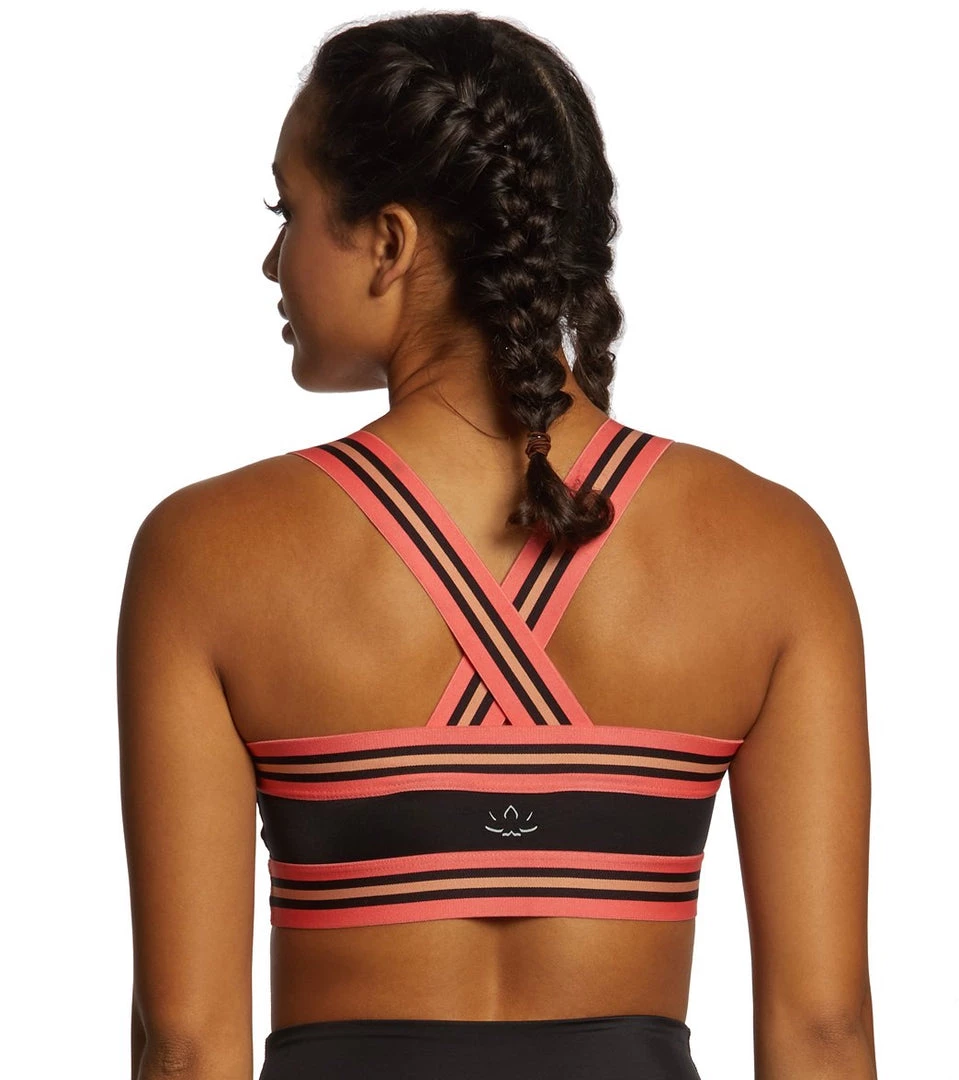 Put some island flavor into your next yoga sesh. This Beyond Yoga Lux In Bloom Bra features a bold island floral print with pink striped elastic straps and hem band for an athletic, yet feminine touch.