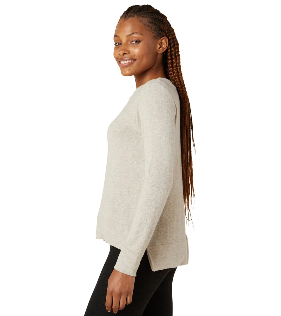 Great for work, play, or working out, the Beyond Yoga Side Slit Long Sleeve Pullover is a timeless sweater option with a stylish high-low hem.