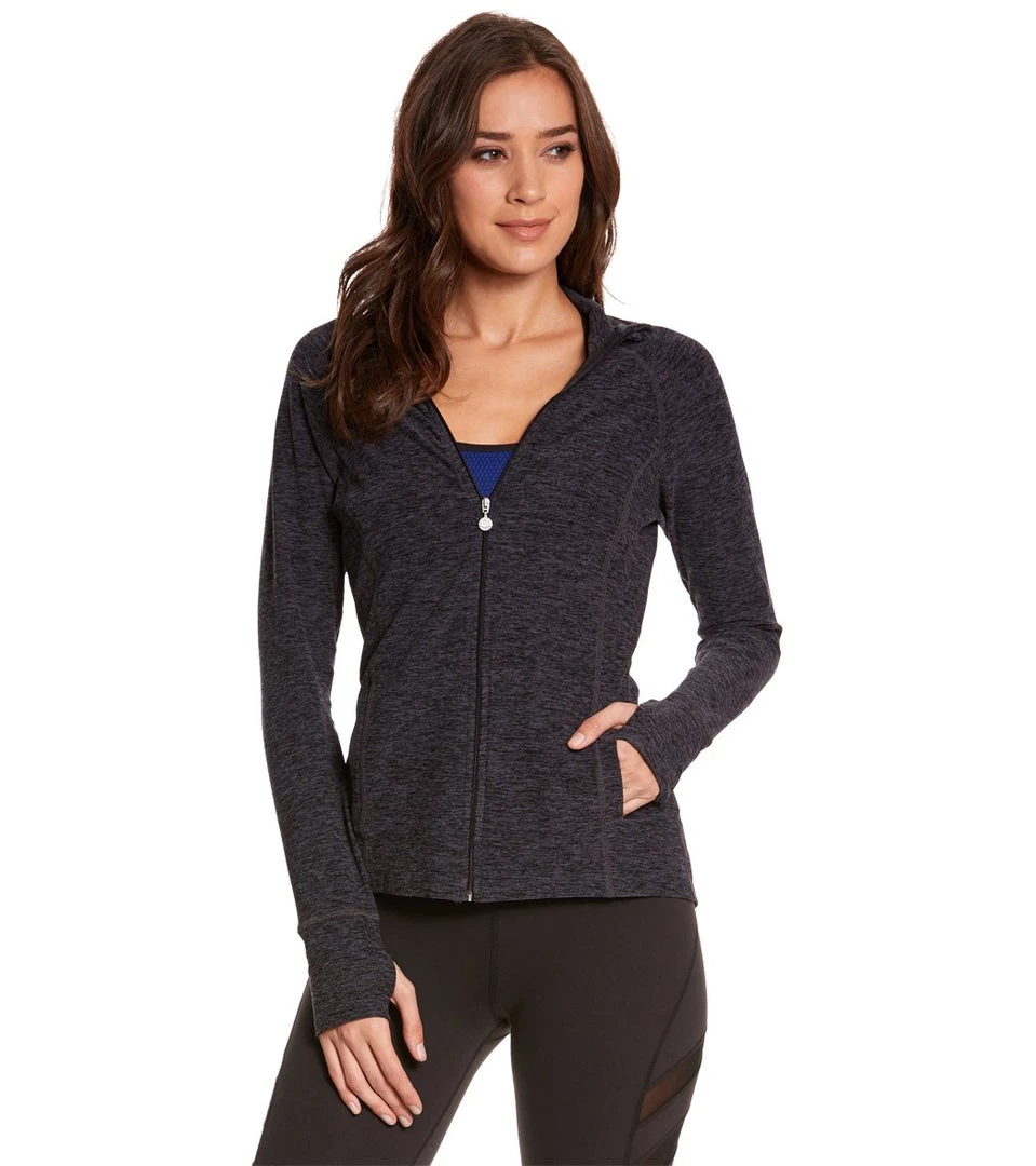 Bring high fashion to your yoga mat with the Spacedye Pleated Back Yoga Jacket. This après piece has a chic peplum-back design at the back for a sassy studio look.