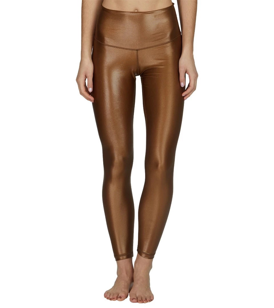 Get high shine and high style in these DYI High Waisted Shine Signature Yoga Leggings. These long leggings feature a glossy finish that shines as you move. A super high waist provides support and coverage where you need it most, while the stretchy and lightweight fabric keeps you light on your feet and comfortable throughout class.