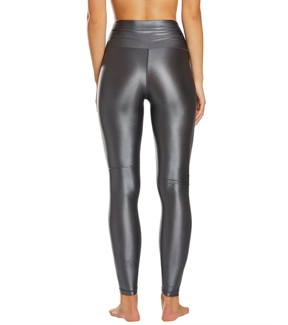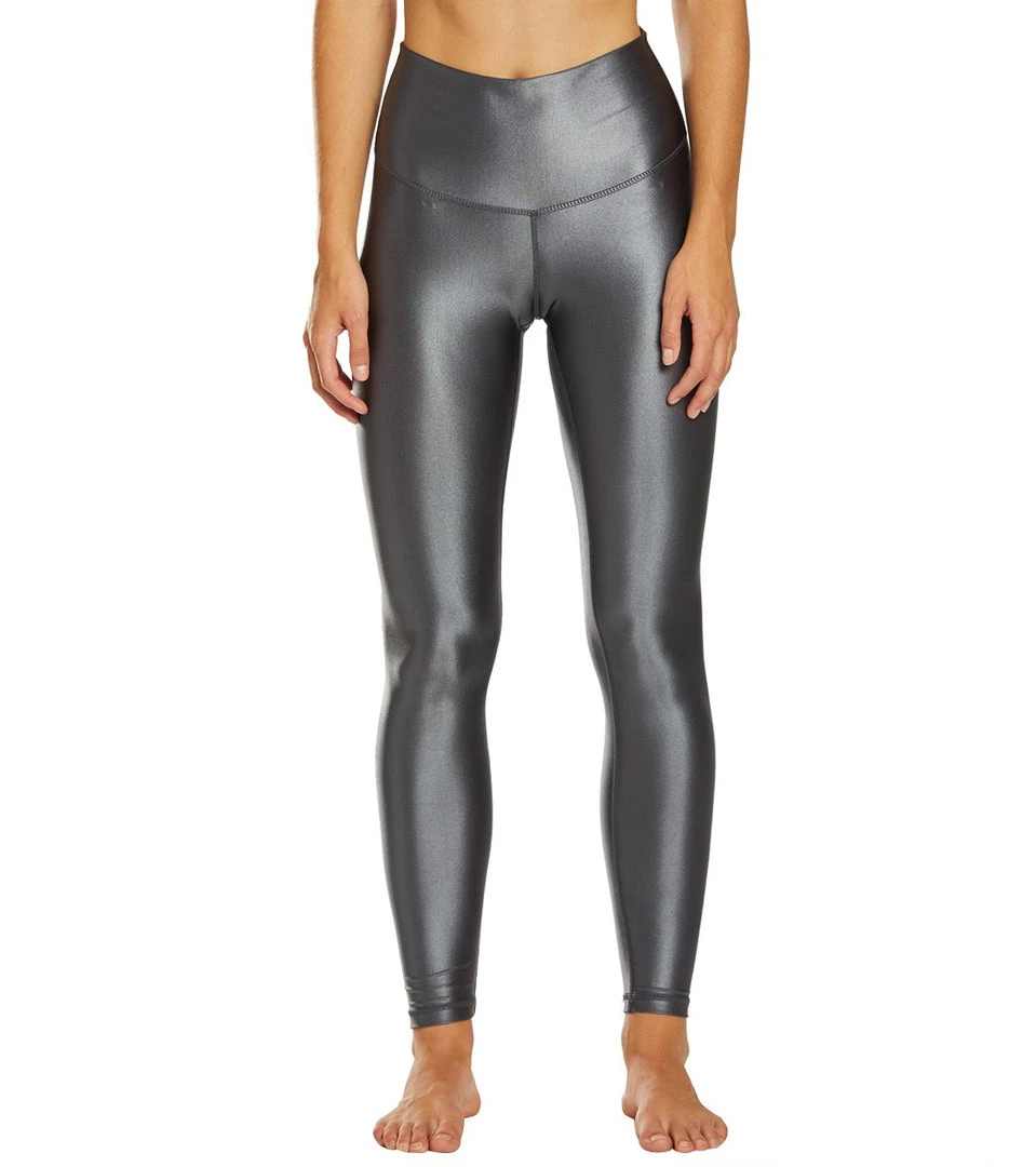 Get high shine and high style in these DYI High Waisted Shine Signature Yoga Leggings. These long leggings feature a glossy finish that shines as you move. A super high waist provides support and coverage where you need it most, while the stretchy and lightweight fabric keeps you light on your feet and comfortable throughout class.