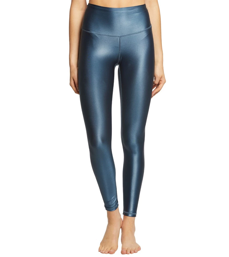 Get high shine and high style in these DYI High Waisted Shine Signature Yoga Leggings. These long leggings feature a glossy finish that shines as you move. A super high waist provides support and coverage where you need it most, while the stretchy and lightweight fabric keeps you light on your feet and comfortable throughout class.