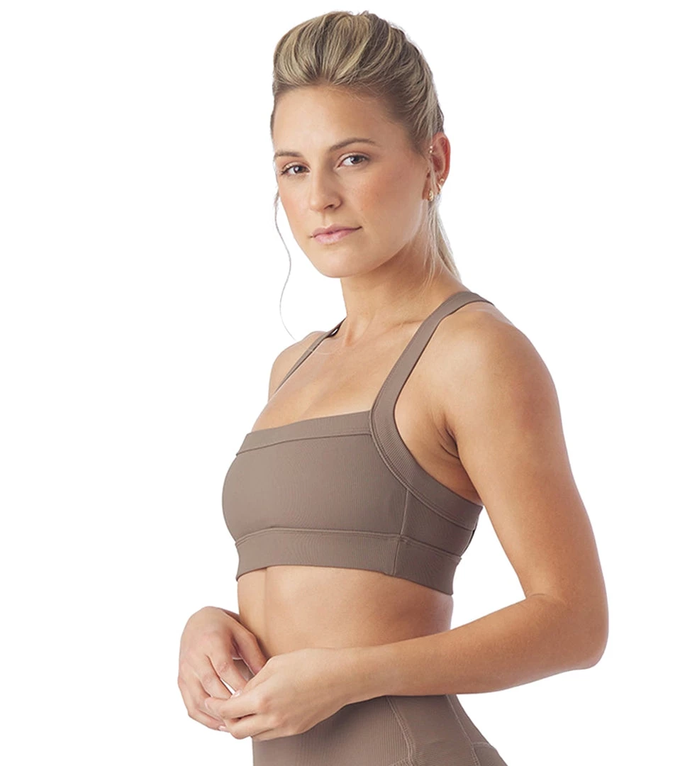 Move in different directions with ease in the Glyder Directional Bra, featuring a textured, ribbed fabric and sleek square silhouette.