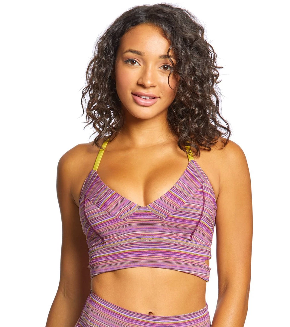 Get ready for workouts under the sun in this Glyder Prma Bra. Designed with mini stripe jacquard fabric for lightweight compression, this sports bra features a flattering silhouette with a split back for some skin exposure.