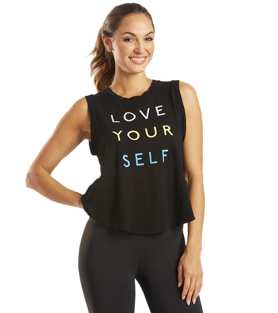 Set your intention in your home yoga practice while wearing the Good hYOUman Radley Love Yourself Tank.