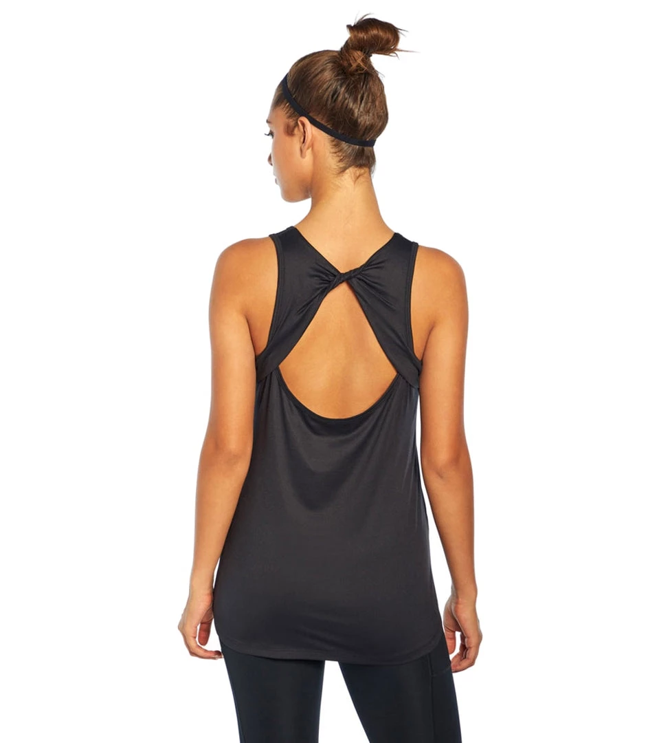 Stay cool in the Marika Back Twist Tank featuring an open back keyhole detail.