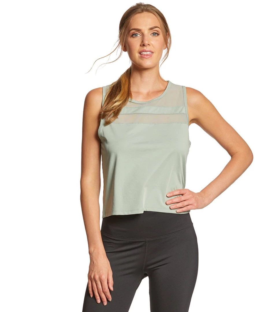 Move in comfort in this Marika Flounce Yoga Crop Top. Constructed with Marika’s Dry Wik finish for moisture-performance properties, this crop tank features contrast mesh inserts at the front and back to keep you cool as you heat up.