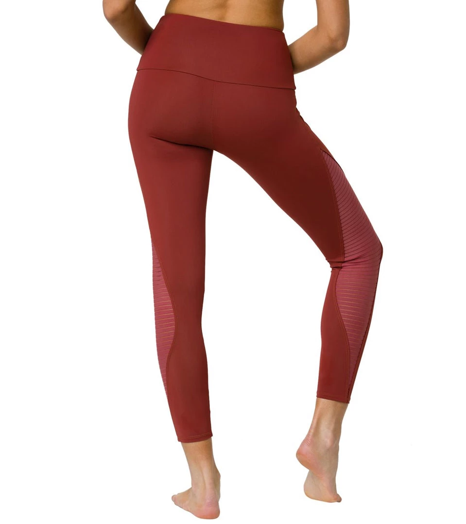 Workout with ease in the Onzie Shape Mesh 7/8 Yoga Leggings featuring mesh panels that dry quickly.