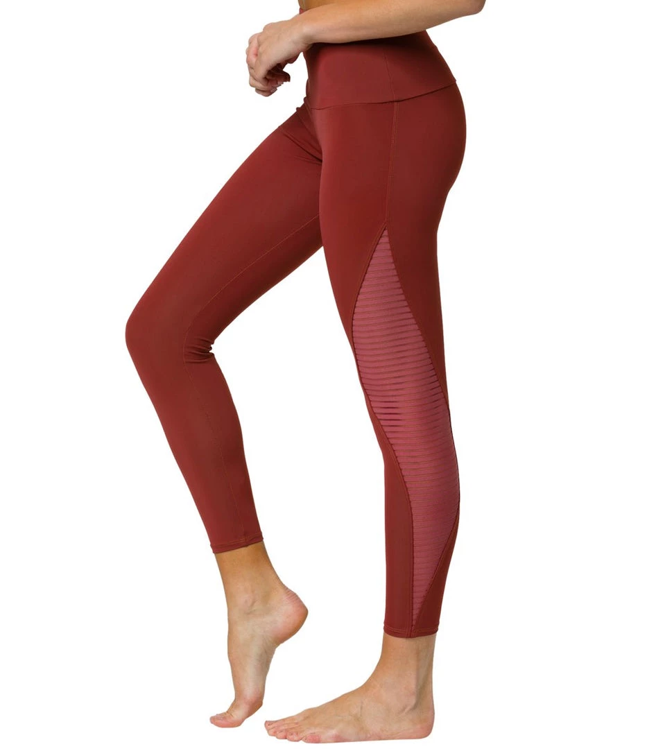 Workout with ease in the Onzie Shape Mesh 7/8 Yoga Leggings featuring mesh panels that dry quickly.