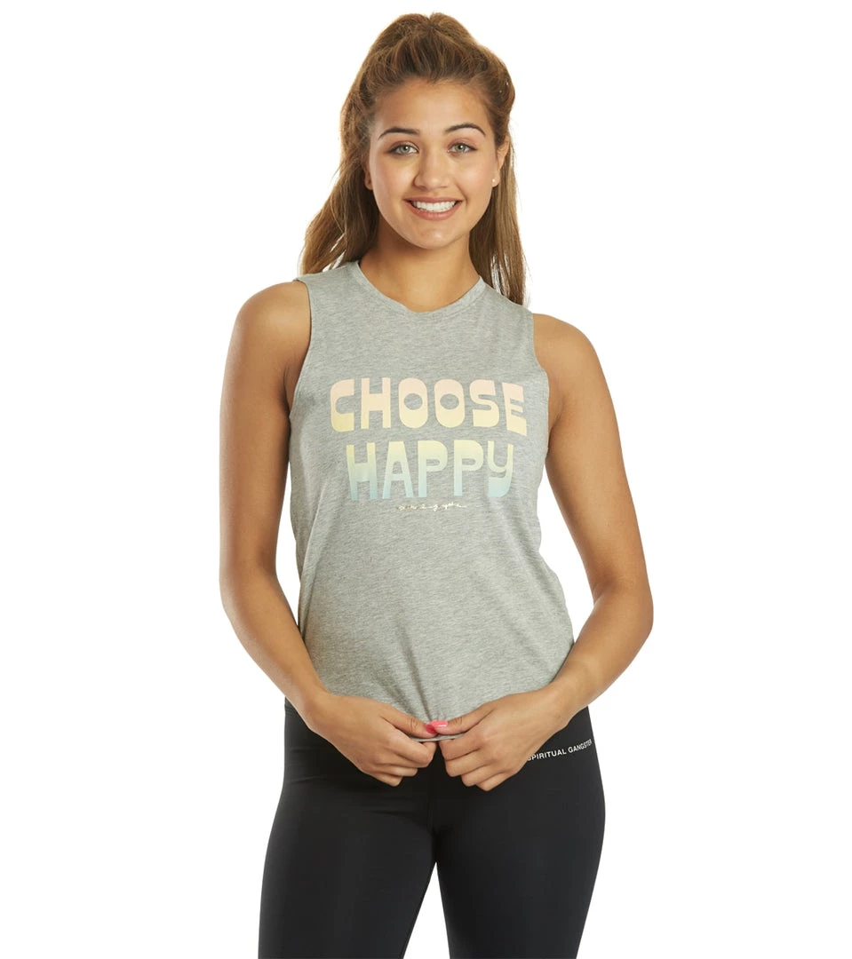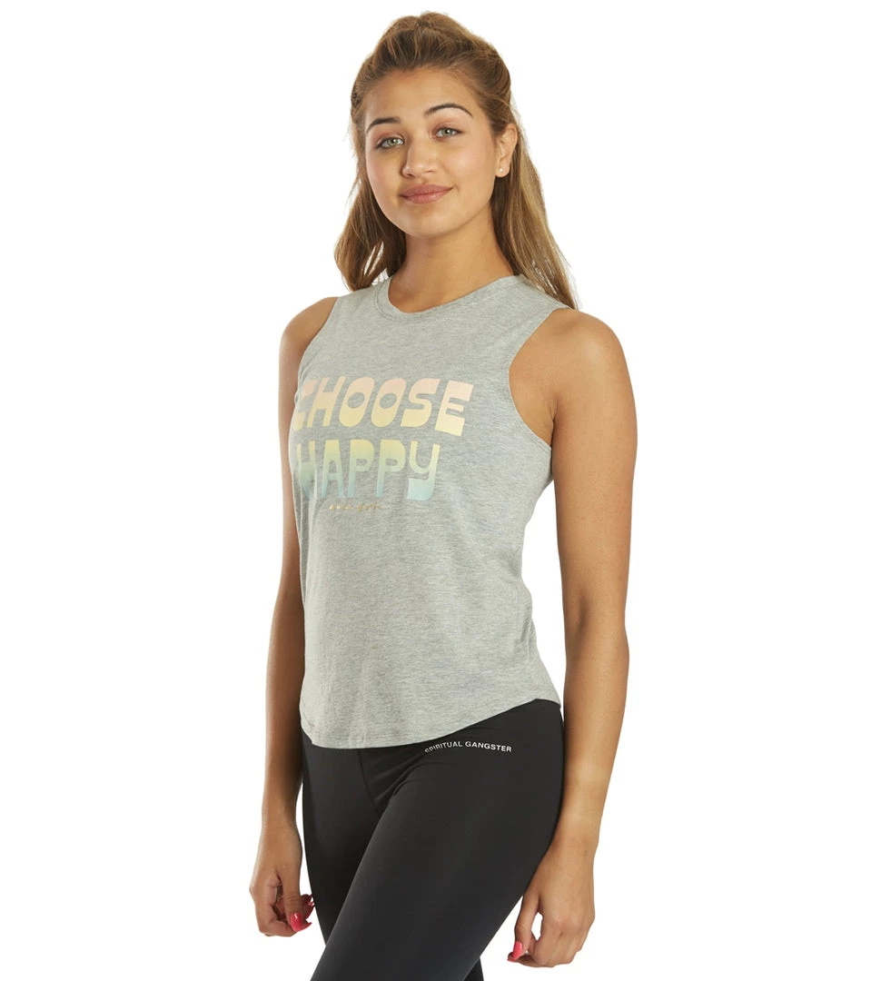 Make someone smile when you wear the Spiritual Gangster Choose Happy Muscle Tank.