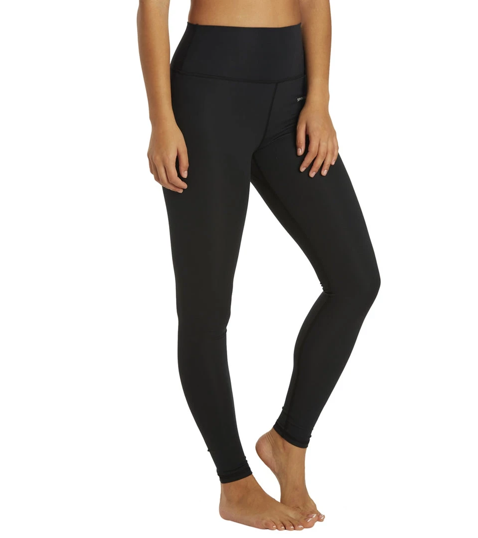 - : Yoga leggings. Solid. Sheer proof fabric. Fold over waistband. Elastic-free edge. Hidden interior card pocket at waistband. Quick-drying. Moisture-wicking. Anti-odor. Compressive 4-way stretch.