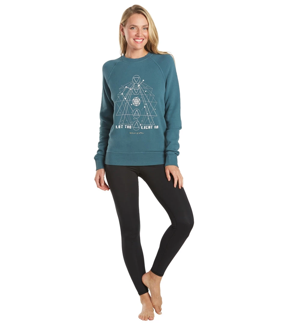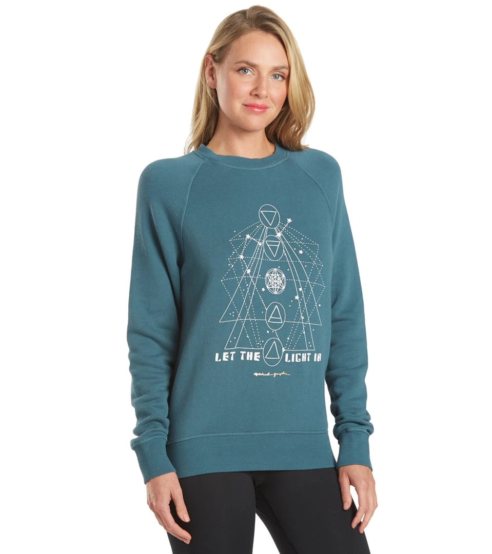 - : Pullover crewneck sweater. Soft cotton. Raglan sleeves. Sacred geometry inspired ”Let the light in” graphic. Relaxed fit.