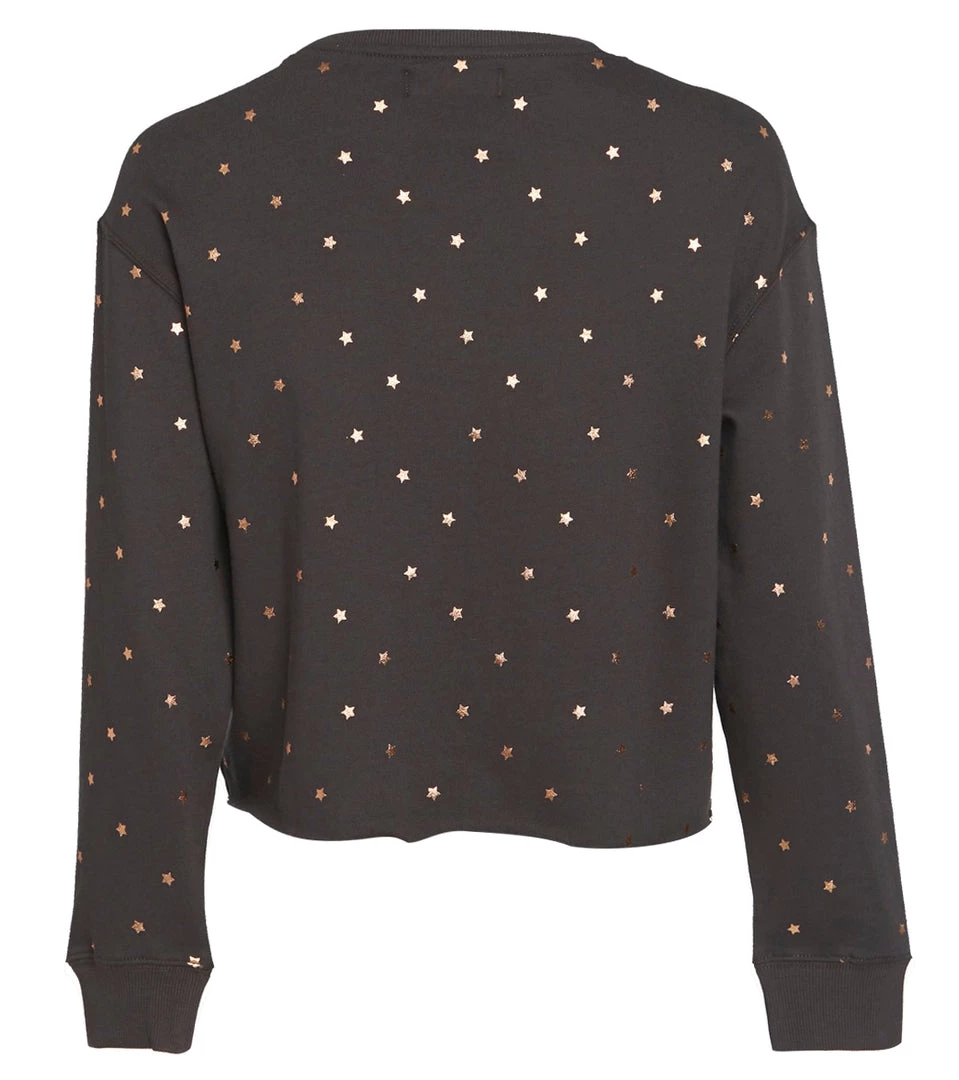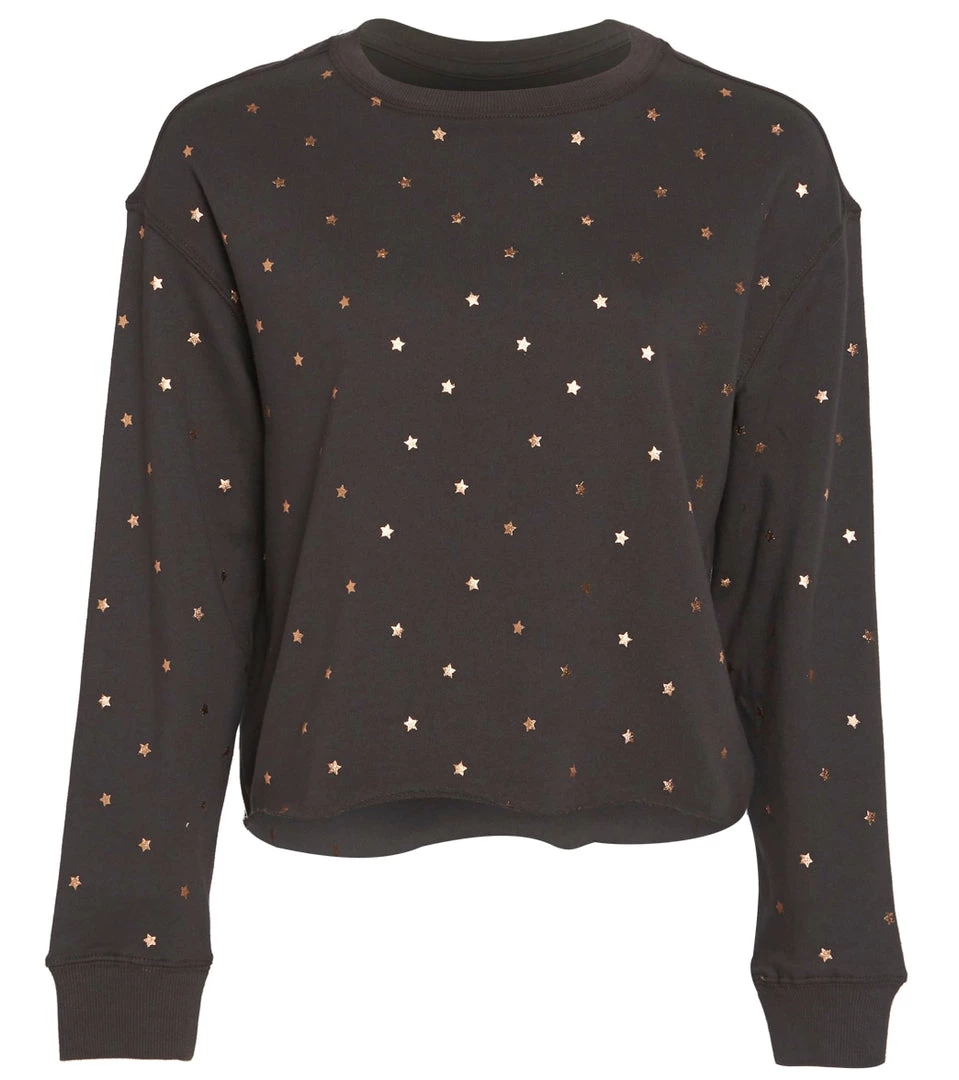 Reach for the stars in the Spiritual Gangster Mazzy Pullover Sweatshirt. Features gold foil stars all over and a raw edge hem for a relaxed vibe.
