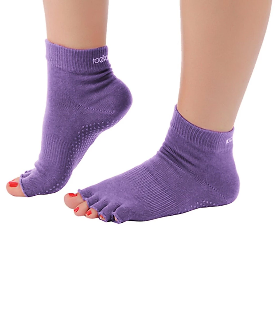 Enhance your performance with these Toesox Ankle Length Half-Toe Yoga Grip Socks. Its open five-toe design allows your toes to spread naturally for a better-supported stance, while a patented non-slip sole provides secure footing as you move on and off the mat.