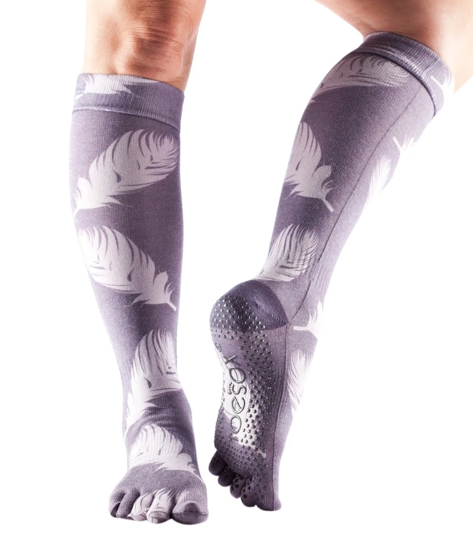 Stick to your practice with the Knee High Scrunch Full-Toe Yoga Grip Socks. From yoga to dance, these socks give you a hygienic alternative to bare feet.